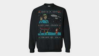 There’s an ugly Christmas sweater for just about everything these days, and Star Trek is no exception. This Trekkie jumper features an uncharacteristically happy Spock, and a tapestry of the team mistaking Santa for some sort of alien lifeform. Hopefully the encounter is a diplomatic one, otherwise a lot of gift-less children won’t be happy with Starfleet this Christmas…